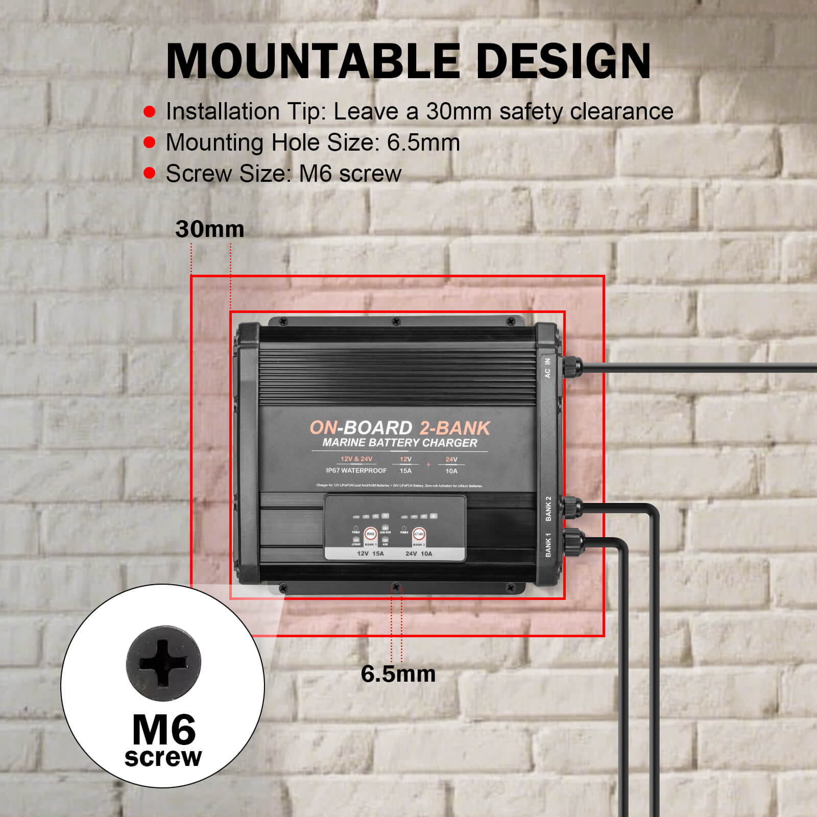 [Easy Installation for RVs and Boats] With a compact design and mounting-ready body, this charger is built for seamless onboard installation in RVs and boats.