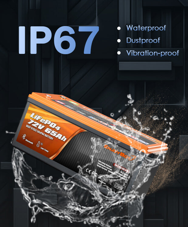 With an IP67-rated enclosure, Enjoybot 72V 65Ah lithium battery shrugs off dust, dirt, and water — keep powering through. From muddy backroads to rainy golf courses, you can count on Enjoybot to deliver clean, dry power wherever your adventure takes you.