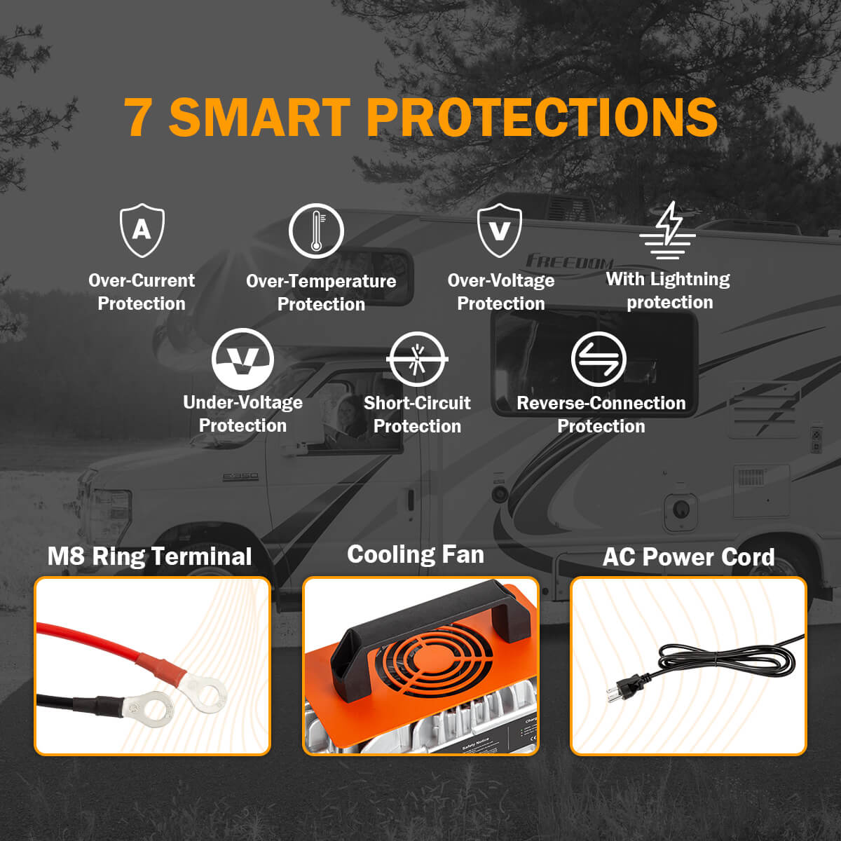 [Warranty and Service Support] Our LiFePO4 charger has 2 years warranty, we provide professional technical support and customer service. If you have any questions, please feel free to contact us.