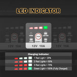 [Advanced Multi-Stage Protection] Includes short circuit protection, reverse polarity protection, overcharge protection, over-temperature protection, and no-load protection to ensure safe, worry-free charging.