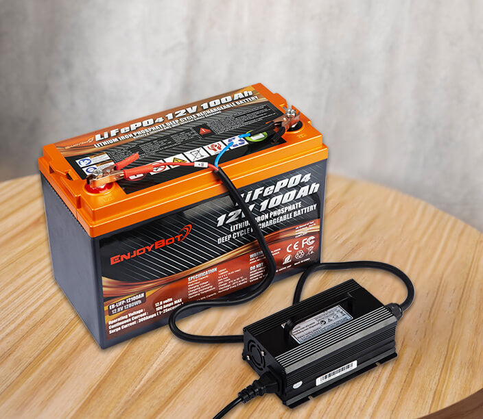 [Premium Battery] Enjoybot 12V 100Ah LiFePO4 battery adopts LiFePO4 chemistry, with 1280Wh energy, 1280W power output, and provides 100Amp max continuous discharge current, 350A (3-5s) peak current.
